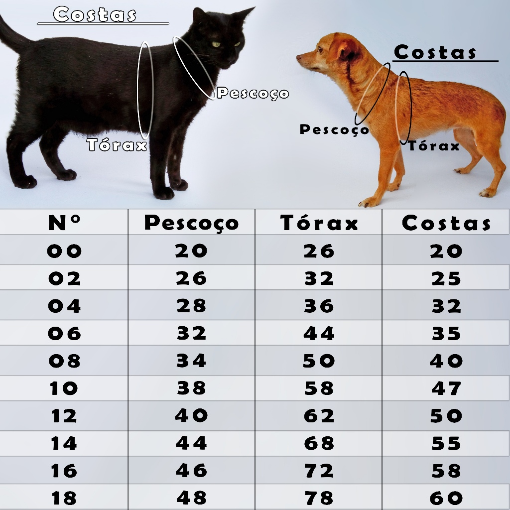 Isso ajuda a escolher o tamanho ideal para o seu pet.
